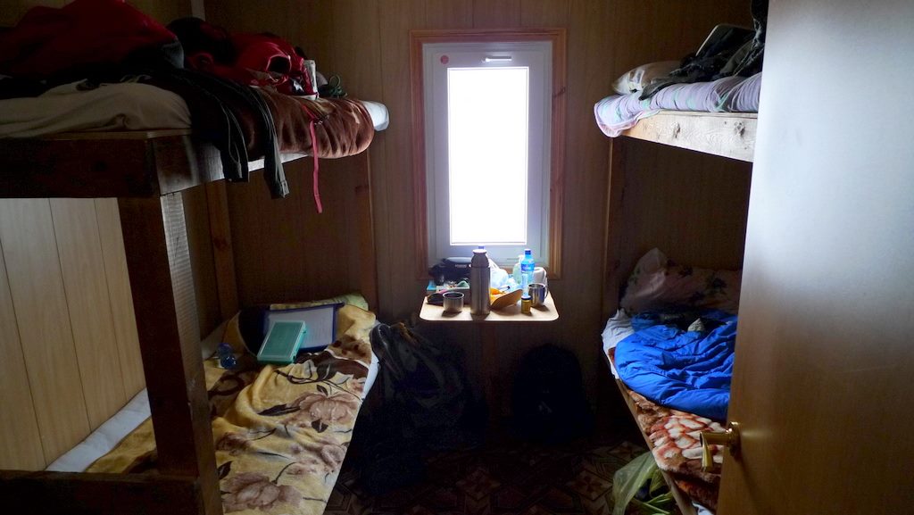 The first stop was called ‘Mir’ after the illustrious Russian space programme, but there was nothing salubrious about the accommodation. We slept on the concrete floor in the windowless ‘station’ listening to the wind howling through the rusting metal cables. Later on a hut called ‘Old Vista’ was built here but this has now closed due to ‘ownership issues’.