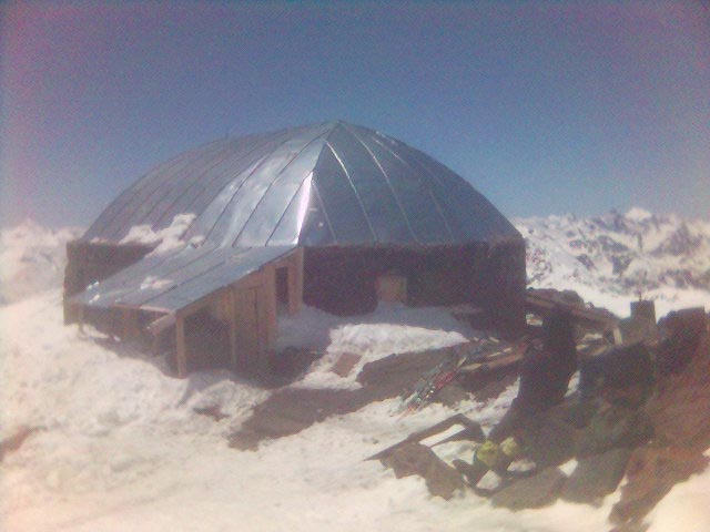 More recently an emergency shelter was built in the Saddle to help climbers who became stranded or lost. The hut can accommodate about six people standing and has two bunks, but there is nothing inside.