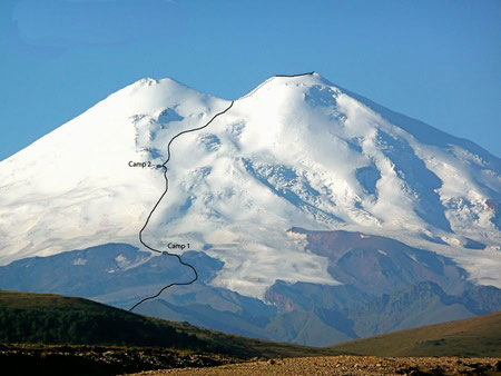 Nowadays Adventure Alternative use the new National Park huts for its main high camp on the south side of the mountain and makes several forays up higher on the mountain to as far as Pastukhov Rocks at 4650 metres for acclimatisation. These rocks are named after the famous Russian army cartographer who tried many times in the 19th century to summit the mountain without any success. He was forced to camp at these rocks during one of those attempts.