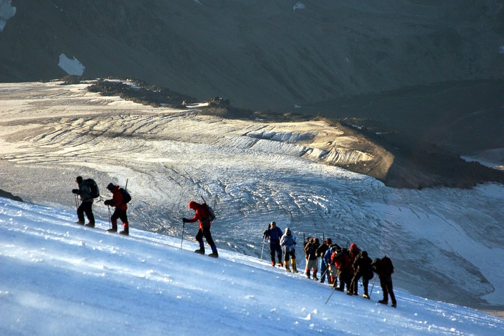 Elbrus in Russia is probably the obvious follow-on from Kilimanjaro, lower at just over 18,000 feet but significantly colder. It involves a non-technical ascent in crampons and the summit plateau can be a nightmare to navigate in poor visibility. The area is beautiful though, deep in the Caucasus, redolent of the Alps fifty years ago.
