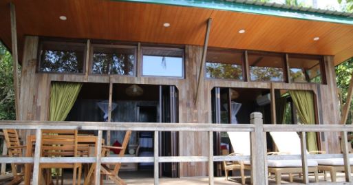 Or Treetops (above) is a traditional wooden chalet, built on stilts 3m above ground. Out of every window and from the decking you are met with the sights and sounds of the jungle, as well as a wonderful sea view. The soft white sand of our near deserted beach is just a 50m walk through the jungle.