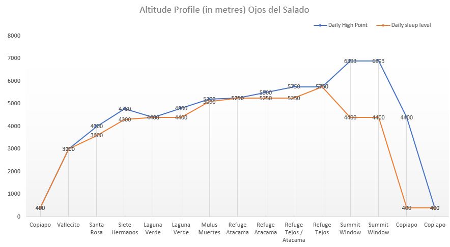 Summary of Mount Ojos del Salado itinerary: