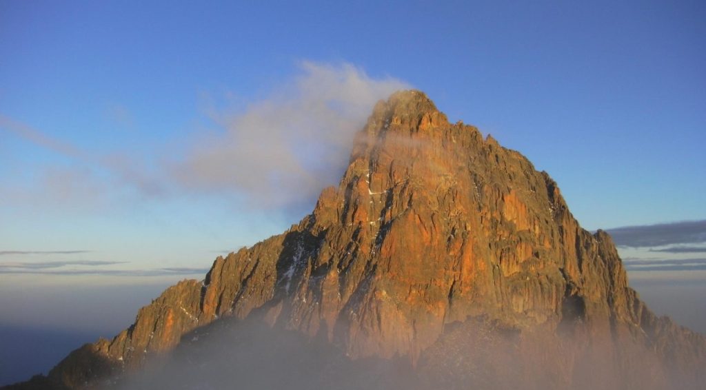 The second tallest peak on Mt Kenya demands 18 pitches of trad rock climbing. Like its neighbor, plenty of technical rock climbing experience is required prior to climbing this demanding point. It is possible, if the weather and snow pack permits, to climb both Nelion and Batian Peak in the same day if you are a well-experienced fit climber, but this involves traversing between the two. There is in fact a small bivi hut right on the summit of Nelion which can take two people who get weathered out or have run out of time. Prime times for climbing Nelion are September through to March.