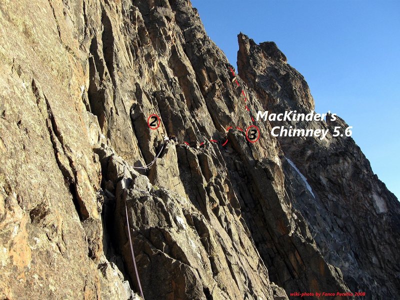 The crux of the climb is UIAA IV- or a UK hard severe or American 5.5, although the altitude may make it seem harder than this. Most passages are II-III or Diff/V Diff. De Graaf’s variation is commonly used by guides now and is the crux move, it’s slightly longer but less exposed than the Rickety Cracks, and it has excellent protection with a bolt on the upper part of the pitch where there is an awkward step out.