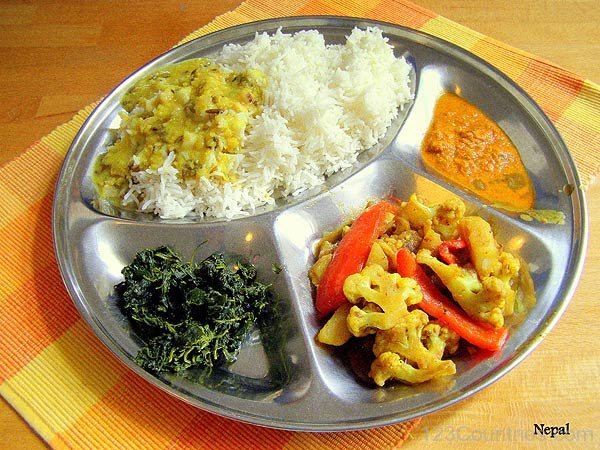Lunch/dinner – Soups (tomato, garlic, vegetable, mushrooms etc), veg fried rice, dal bhat, curry w/rice, noodles (mix fried, veg, egg, w/cheese), macaroni, spring rolls (veg, egg, cheese, mixed), momo (boiled or fried mini pasties with either veg or meat), pizza (all types), fried potatoes (w/veg or cheese), chips, buff steak (water buffalo, occasionally yak), lasagne.