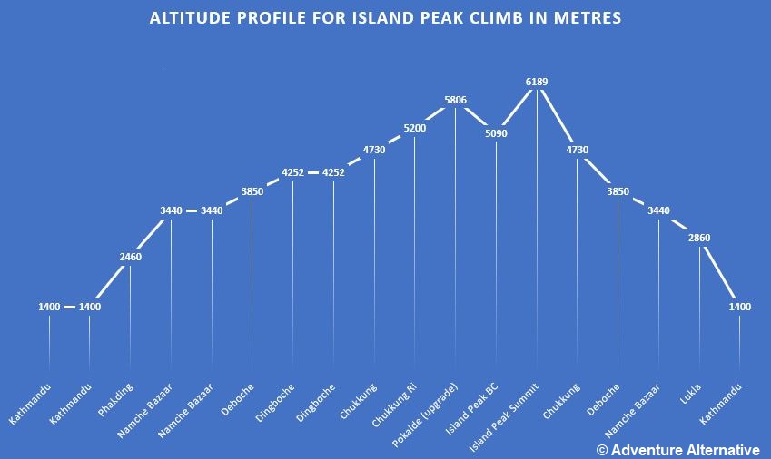 In terms of training courses, some of the skills for Island Peak are different to what you find on alpine courses. In general the experience you will gain is invaluable of course, especially ropework and moving confidently and safely on glaciated ground. However, fixed lines are uncommon in the Alps so make sure to mention to your training guide that you would like some work on using jumars safely and abseiling on a fixed line without being top roped.