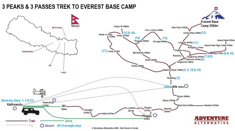 Three Passes & Three Peaks Trek to Everest Itinerary