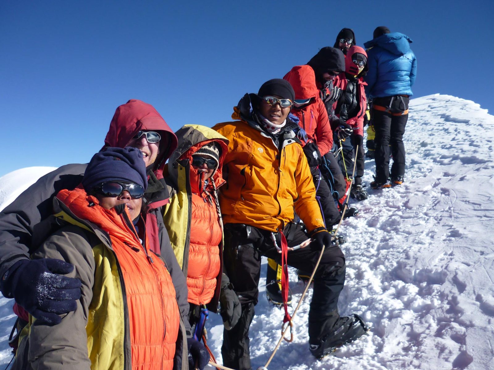All of the equipment can be rented very easily in Kathmandu or in the high villages near to the popular trekking peaks. For example in Khare for Mera Peak or Chukkung for Island Peak. This will save money on the daily charge and also the extra weight for a porter to carry. However you cannot guarantee the sizes of certain items, especially boots, nor the quality. Check every item first, especially the sharpness of the points on the crampons and whether the slings are worn out.
