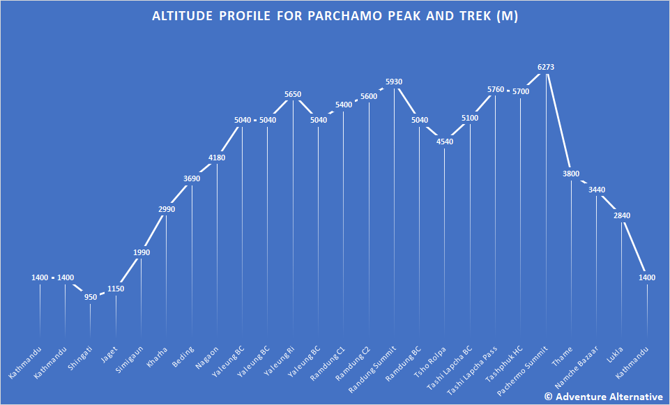 Altitude Profile for the Rolwaling Trek and Parchamo Peak Climb