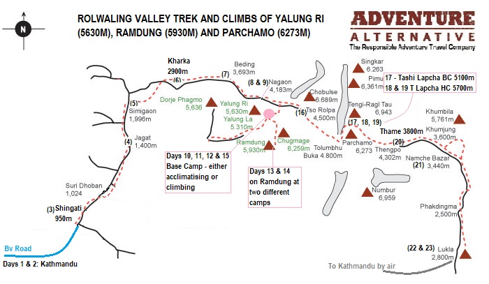 Please note that the itinerary given is the outline plan. However, we will be travelling in a high mountain environment with a number of unknown influences including weather and rates of acclimitisation of different individuals. Therefore the itinerary is flexible to some extent to allow our leaders to make appropriate decisions on the ground based on prevailing conditions.