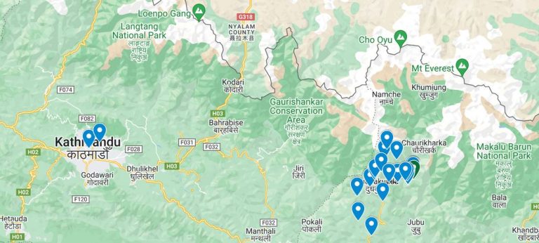 Arriving into Kathmandu we will arrange your airport pick up and transfer to the hotel of your choice, we have a number we can recommend, and after a day of sightseeing around Thamel it is an 8 hour drive by road towards Paphlu. The trek will be led by one of our Sherpa guides and porters will carry your main bag (either a duffle or a rucksack), and mostly the accommodation is in Sherpa lodges or teahouses which provide all the meals which are normally traditional fare like dal bhat, rice, potatoes, meat and vegetables. In this lower region you are less likely to find western foods but there will be noodles, omelettes, pancakes, bread and fruit, and plenty of chocolate and snacks. Water is best boiled and kept in your bottle, rather than buying plastic bottles, and the lodges will have hot showers and bedrooms with beds, mattresses and some bedding available to borrow like blankets.