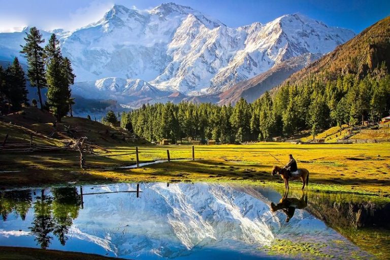Deosai is the 2nd highest plateau in the world after the Changtang Tibetan Plateau and has an average height of 4100m. Deosai, with its lush green grass, colourful wildflowers and rare butterflies, is rightly described as “Summer’s Palace” by the locals. The altitude of the Deosai Plains will help acclimatisation, and lunch is at the beautiful Sheosar lake, which offers spectacular views of Nanga Parbat (8124m).