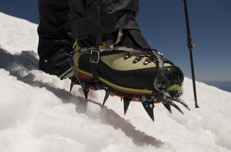 If you choose to purchase your own crampons prior to the trip please ensure that you take your boots to the shop and ask a suitably experienced person to check the fit of the crampons with the boot. Some combinations of boot and crampon do not provide a good match and can lead to poorly fitting crampons and consequent problems on the mountain. If you are planning on using overboots to upgrade the warmth of a boot you will also have to check carefully if the crampon will be secure. You may need to cut out sections of the overboot to align with heel or toe bails.