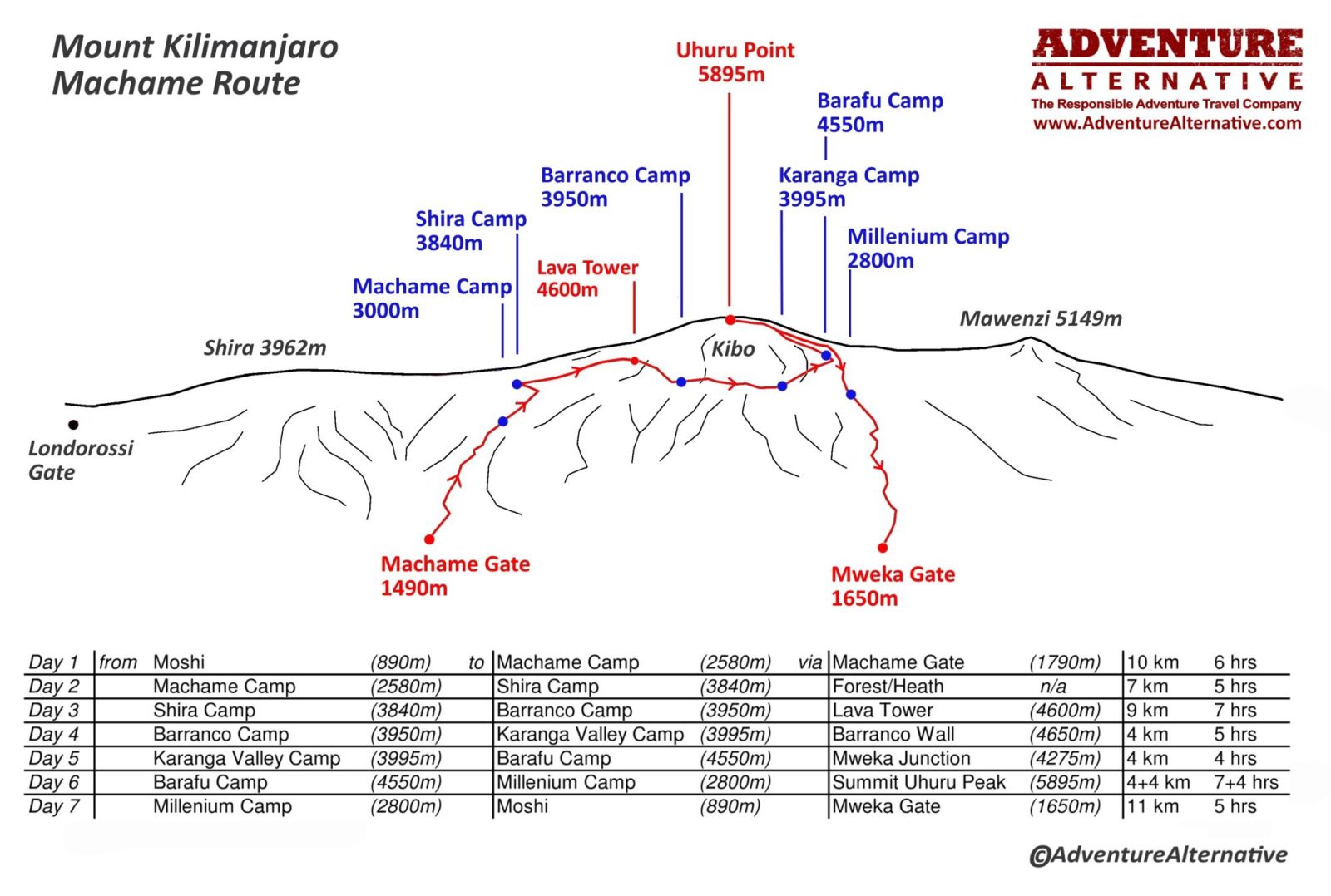 Trekking Mount Kilimanjaro via the Machame route in 7 days is our preferred route as it offers excellent acclimatisation and views.