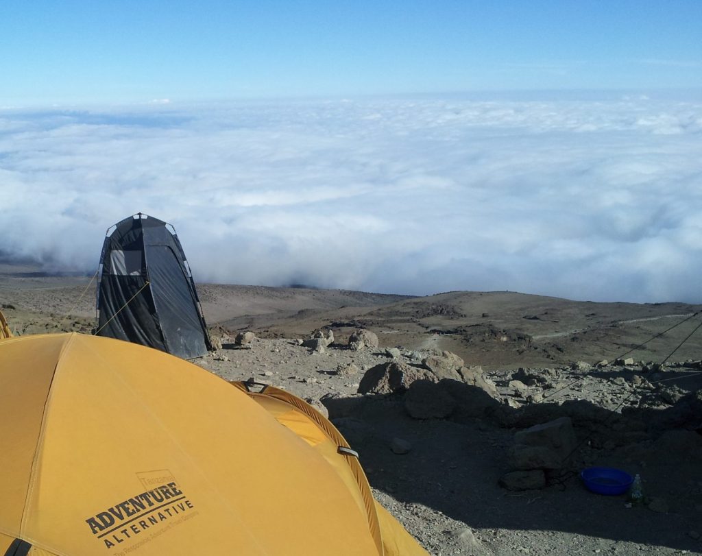 If you google ‘toilets on Kilimanjaro’ you are guaranteed to get a range of answers! Historically they weren’t great – wooden huts with holes in the (very slippery) wooden floor for your business to drop down into vast bottomless pits, or if it’s an old, well used loo, then the drop was just a few inches! These toilets were famed for not having doors (loo with a view) and if windy, when your bits are out, well let’s just say the draft wasn’t great – though the wind would dissipate the smell! The original toilets do still exist and are used by the staff, so if you would like to experience them, it’s still possible, but do take a clothes peg!