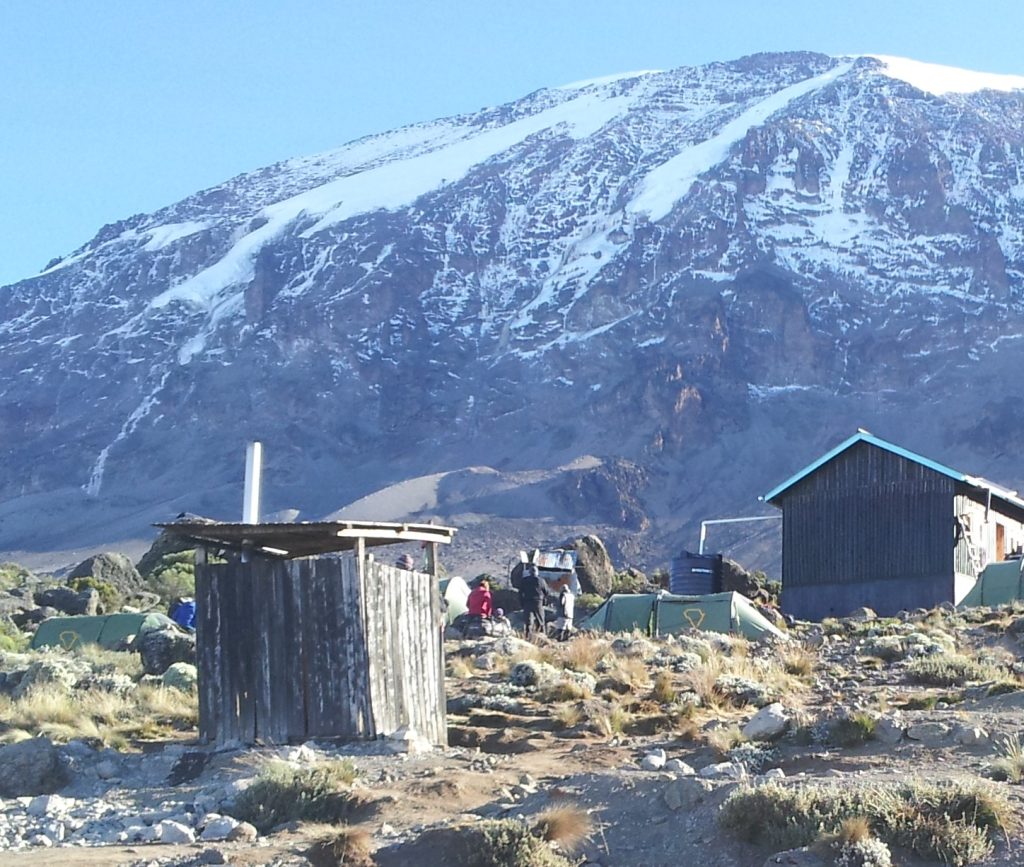 The traditional ‘Loo with a View’ looking up to Kilimanjaro from Karanga Camp.