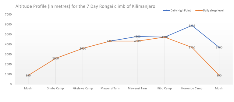 The total days on the trip is ten, which includes the arrival day, a rest day, 7 days on the mountain and one day to fly back home. You can choose to stay on in Tanzania and either go on a 4D3N safari to visit the northern parks of Ngorongoro, Manyara and Tarangire, or you can fly to Zanzibar for a few days on the beach.