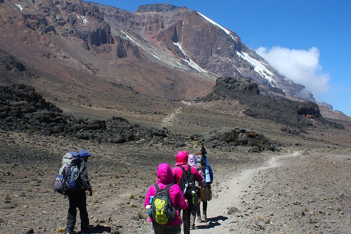 The seven days includes a day of acclimatisation at Mawenzi Tarn and this is an important addition because the flatter terrain means you can’t ‘climb high, sleep low’ which is a good approach to acclimatisation. This extra day helps a lot and means the summit success rate on this route is quite high at over 80%. A six day itinerary without the acclimatisation day lowers the summit success rate to about 65% and it’s much more likely to get altitude sickness.